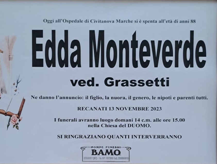 E’ morta Edda Monteverde ved. Grassetti