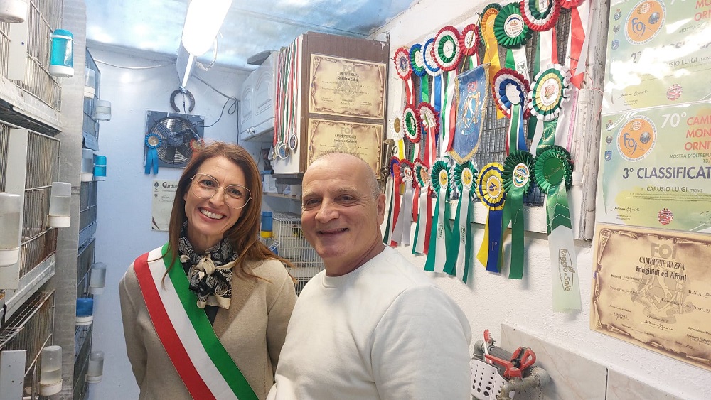 Lo scorso fine settimana il Sindaco Noemi Tartabini ha visitato l’allevamento amatoriale del campione del mondo 2023 di ornitologia, Luigi Carusio. Nella struttura situata nelle campagne potentine vengono allevate quaglie, fringillidi, esotici e tortore. Proprio le sue tortore hanno dominato il 70° Campionato del Mondo di Ornitologia svoltosi alla Mostra d’Oltremare a Napoli, guadagnando l’oro sia nella categoria Stamm (si espongono quattro esemplari uguali sia per sesso che per mutazione) che nel singolo.