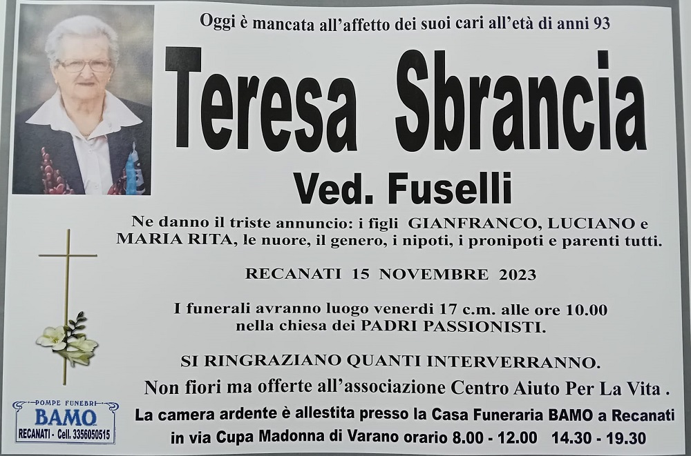 Home » E’ morta Teresa Sbrancia ved. Fuselli