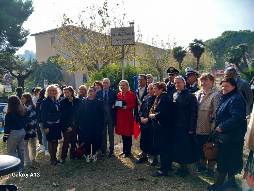 Li chiamano ‘esploratori della memoria’ e mai nome fu più indovinato per gli alunni della Scuola Primaria di secondo grado ‘Lorenzo Lotto’ di Loreto, che alla fine di un laborioso percorso di ricerca che li ha portati sulle tracce della Polonia nella loro città, si sono talmente appassionati alle testimonianze ritrovate da chiedere a Sindaco e Comune di dedicare il Parco di via Trieste al Generale Anders e al II Corpo d’Armata Polacco, autori della liberazione di Loreto e delle Marche durante la Seconda Guerra Mondiale. Dopo un iter amministrativo durato quasi un anno, il sogno dei giovani studenti è diventato realtà questa mattina, mercoledì 15 novembre con la cerimonia ufficiale di intitolazione, alla presenza delle principali autorità cittadine e della stessa Anna Maria Anders, figlia del Generale, oggi ambasciatrice Polacca in Italia.