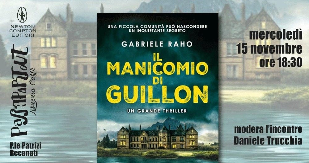 Mercoledì 15 novembre alle ore 18:30 presso la libreria Passepartout sarà ospite lo scrittore Gabriele Raho per la presentazione del suo libro “Il Manicomio di Guillon” (Newton Compton ed. 2023), vincitore del Premio letterario Città di Salsomaggiore. Dialogherà con l’autore Daniele Trucchia.