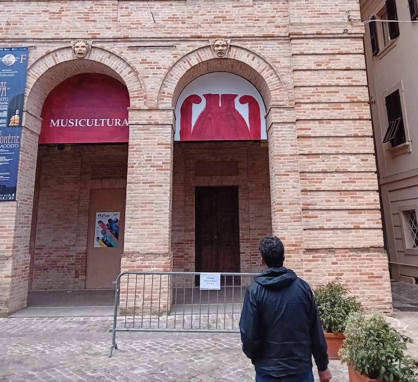 Per queste settimane la biglietteria del teatro Persiani si trasferisce, essendo incompatibile la sua presenza con gli operai al lavoro, nel locale di proprietà comunale, a piano terra sotto il loggato del palazzo, dove un tempo era la sede dell’Agenzia delle Entrate.
