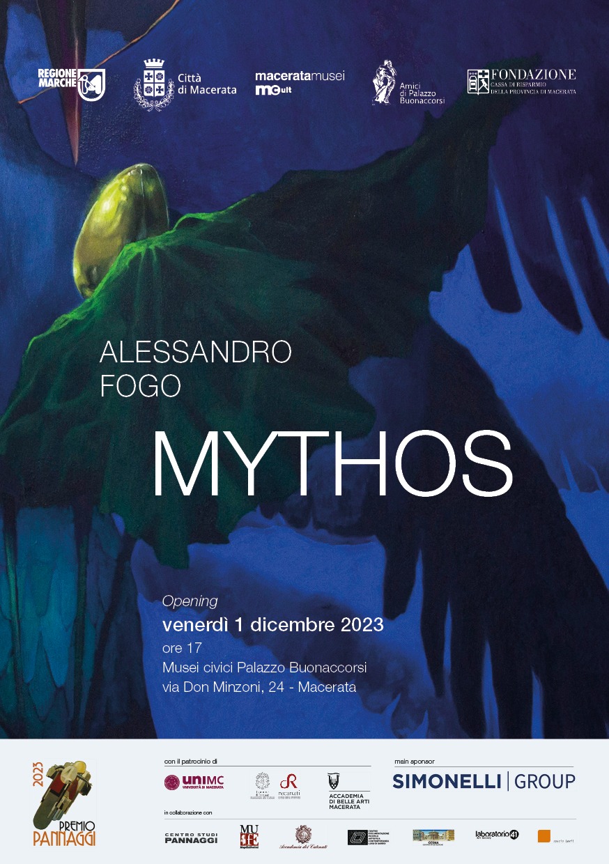 L’Associazione Amici di Palazzo Buonaccorsi e il Comune di Macerata, Macerata Musei, Macerata Culture insieme alla Regione Marche e la Fondazione Carima, sono lieti di annunciare il conferimento del Premio Pannaggi/Nuova Generazione 2023 all’artista Alessandro Fogo, protagonista della personale Mythos che sarà allestita al piano nobile dei Musei Civici di Palazzo Buonaccorsi a Macerata, con il patrocinio dell’Università di Macerata, dell’Accademia di Belle Arti e del Comune di Recanati.