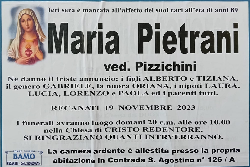Home » E’ morta Maria Pietrani ved. Pizzichini