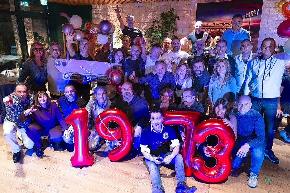Si sono ritrovati in 64 “Giovani Favolosi” a festeggiare il loro mezzo secolo di vita. Si sono dati appuntamento in un ristorante del luogo per una serata, emotivamente intensa per rivedersi, raccontarsi e ricordare come si è soliti fare in queste occasioni ma, decisamente energica quando ci si è riversati in pista per i consueti giochi, canti e balli che si sono protratti fino a notte inoltrata.