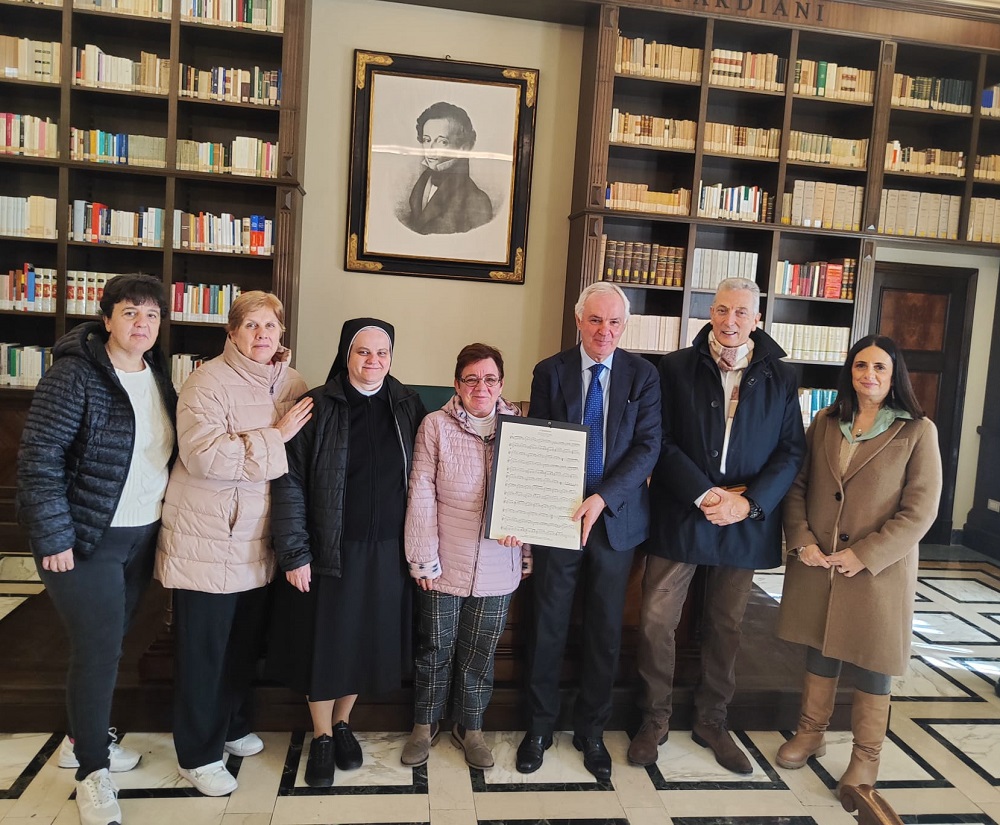 Parole, immagini, musica. La nuova iniziativa del Centro nazionale di studi leopardiani si apre all’Infinito ricorrendo ad una delle arti di riferimento del Poeta, la musica. Grande emozione  questa mattina nella sala convegni Franco Foschi del Cnsl per l’ascolto e la visione del video e dello spartito donati rispettivamente dall’Ad della Algam Eko Stelvio Lorenzetti e dal compositore Massimo Varini ed ideati appunto per celebrare l’opera di Giacomo Leopardi, dal 2019 al centro di una serie di iniziative.