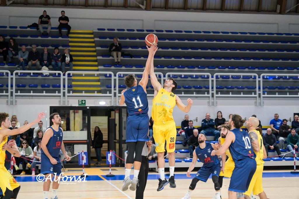 Gli ultimi dieci minuti vedono San Marino che risale la china punto su punto, a 5’28” dal gong Macina riporta i suoi a -6 (48-42) mentre coach Di Chiara chiama un propedeutico time out perchè in un amen la Svethia riscappa a +11 (53-42) con un canestro di Ndzie. Cinque punti consecutivi degli ospiti a cronometro fermo ricacciano i biancoazzurri di coach Millina a -5 (55-50), il tempo per una clamorosa rimonta però non c’è più e Sabbatini e compagni possono esultare per aver portato a casa una vittoria di carattere tremendamente importante considerate le pesantissime assenze.