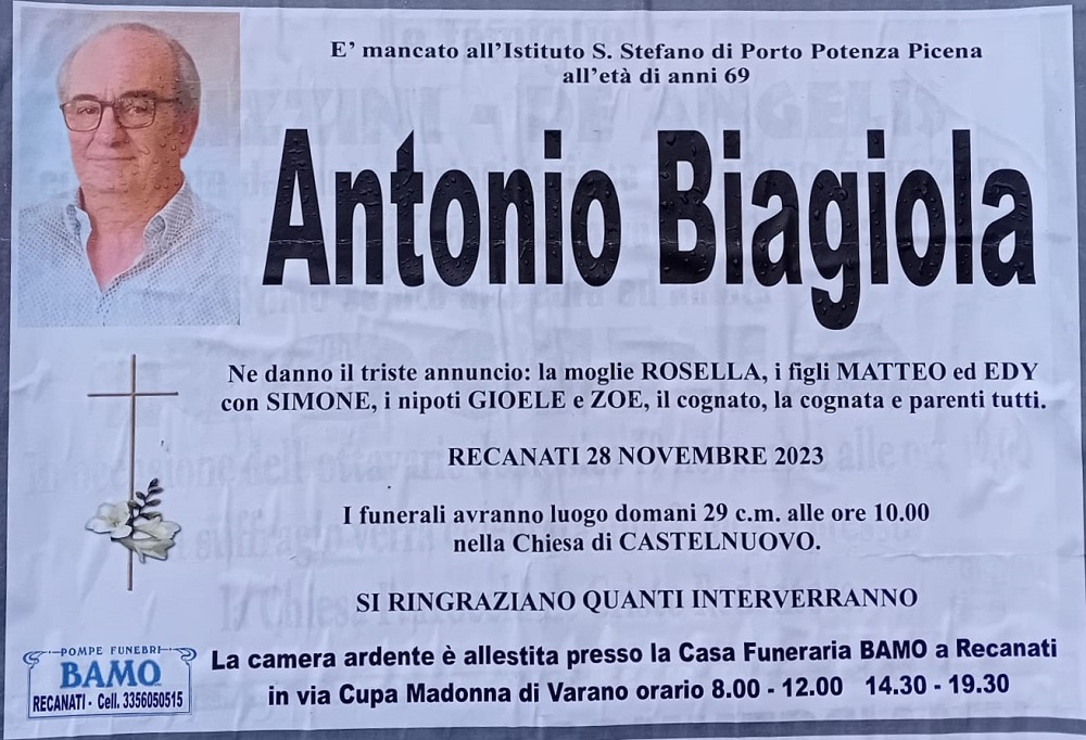 E’ morto Antonio Biagiola