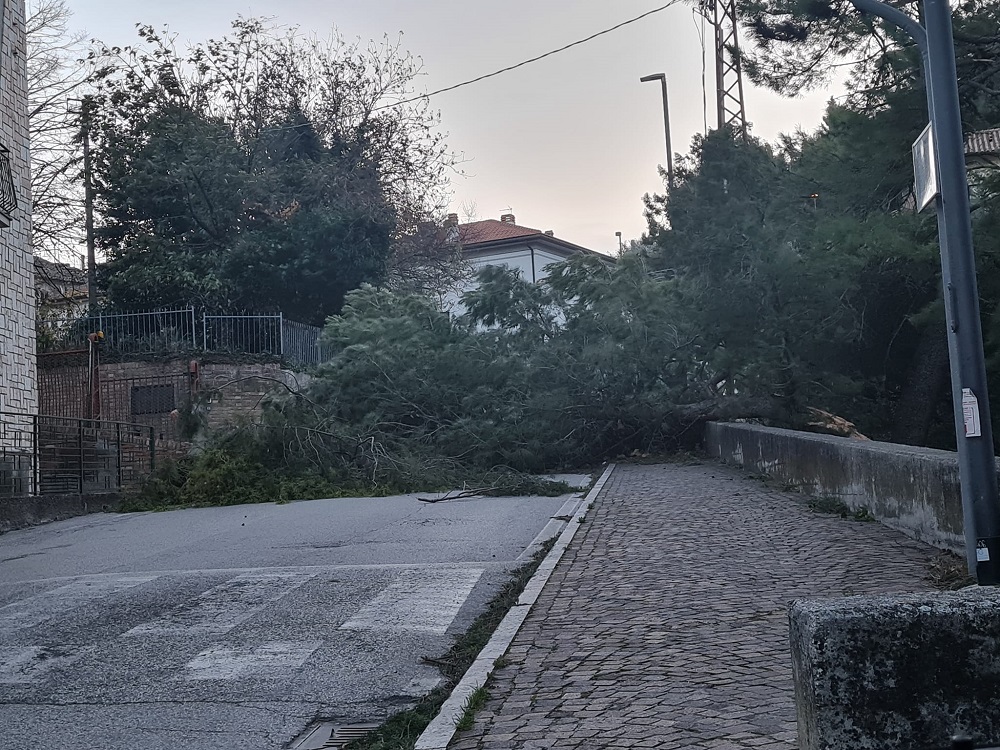 Poco più in là, ma in viale Corridoni, sotto l’ex Hotel Gallery, a cadere è stato il tronco di un grosso albero che ha divelto parte della staccionata metallica che delimita il marciapiede. Un albero è caduto anche a Castelnuovo sopra la scuola primaria e in via Carlo Urbani
