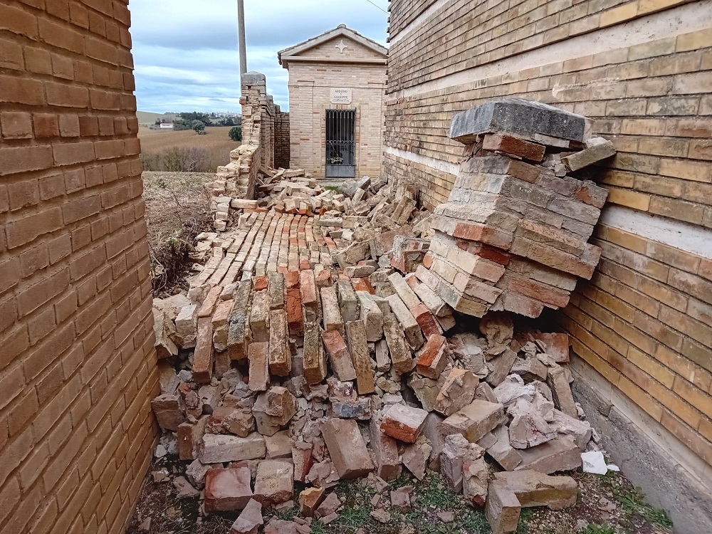 Brutta sorpresa per chi in questi giorni si è recato al cimitero rurale di Santa Croce a Recanati: a causa delle grosse raffiche di vento dei giorni scorsi è crollato, infatti, un tratto di una decina di metri del muro perimetrale del cimitero di campagna.