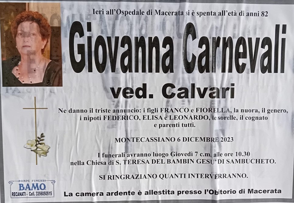 E’ morta Giovanna Carnevali ved. Calvari