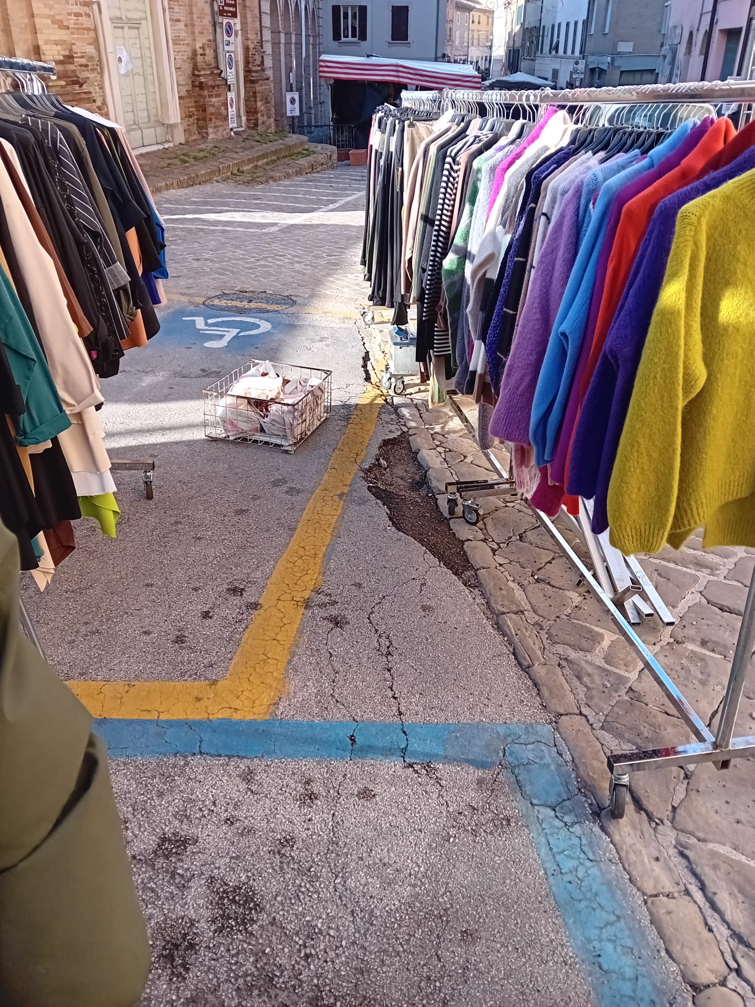 Brutta avventura per una 40enne recanatese ieri mattina. La donna era andata a fare un giro al mercato e si era fermata in una bancarella di abbigliamento che si trova in piazzale Gigli, davanti a palazzo Venieri. Qui, però, ha messo inavvertitamente un piede in una buca presente sulla pavimentazione ed è finita rovinosamente a terra.