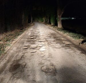 “Ampiezza delle buche oltre il metro e con profondità oltre i 10 cm. che danneggiano le auto”. Torna a protestare Emanuele Giorgini sullo stato disastroso delle strade della frazione Chiarino e, in particolare, in cui versa parte di quella strada di campagna – circa un chilometro –, all’altezza dell’incrocio con il complesso Astea e fosso San Giuseppe. È da tempo che il residente scrive e protesta con il sindaco Bravi, il Prefetto e il presidente della regione, ma non riesce proprio a farsi sentire. Nel dicembre scorso erano state sistemati alcune parti della strada ma già, a distanza di un anno, si è al punto di partenza. Giorgini tiene anche a sottolineare “che per legge il sindaco deve provvedere alla sicurezza stradale, è lui il responsabile. Inoltre in questa zona di nessuno vige la regola del delinquente e del più forte, dove il più prepotente sfreccia a velocità che vuole, nessuno controlla, e molto spesso sono anche i camion delle imprese agricole locali. Per questi mezzi pesanti neppure le buche sono un deterrente, anzi loro possono permettersi di andare a velocità non adeguate visto la dimensione dei loro pneumatici e la dimensione della carreggiata.