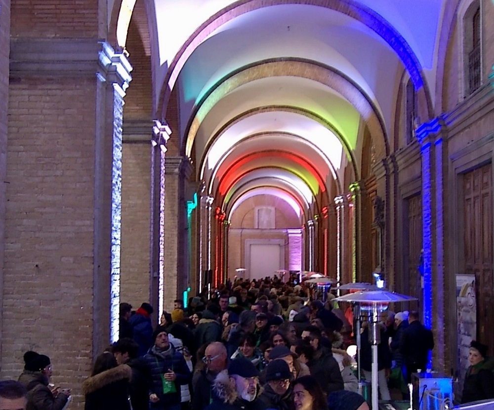 Anche quest’anno tantissimo pubblico proveniente da tutta la provincia di Macerata, ha animato il loggiato del Comune di Recanati, trasformato per l’occasione in un mercatino natalizio del gusto, con stand enogastronomici locali che hanno permesso ai partecipanti di degustare i prodotti del territorio.