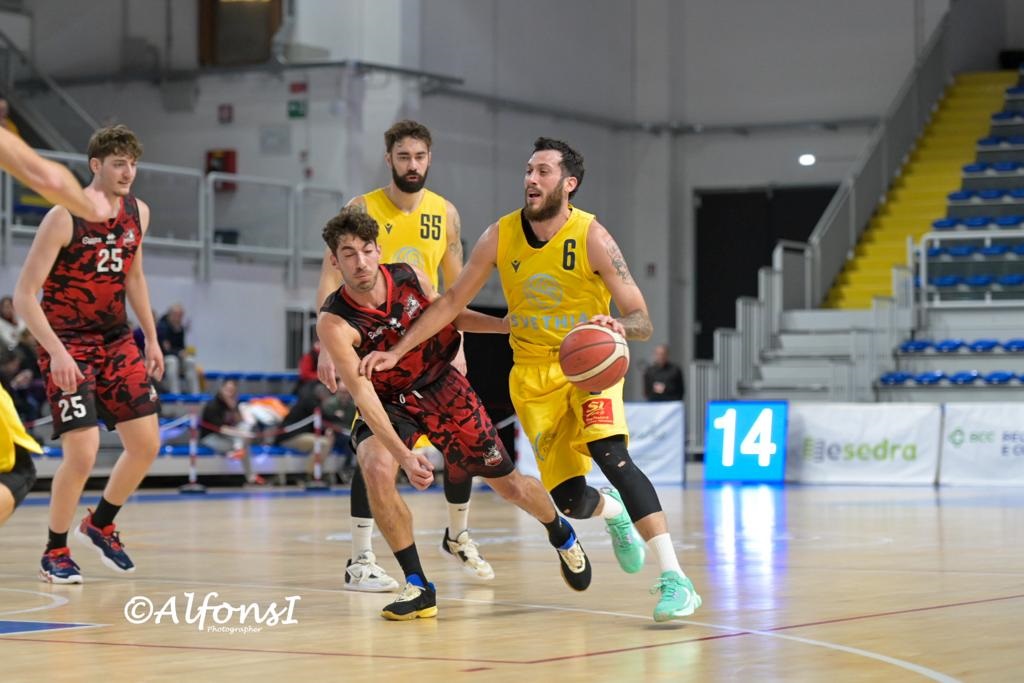 RECANATI – Missione compiuta per la Svethia che dopo l’entusiasmante successo di Montemarciano tiene alta la concentrazione e senza troppi sforzi archivia la pratica Perugia 79-52. Al PalaCingolani-Pierini c’è sostanzialmente partita solo per i primi dieci minuti, due bombe consecutive di Sabbatini costringono coach Vispa a chiamare il primo time out della serata. La Svethia prova a scappare con la tripla di Pozzetti ma i primi dieci minuti su chiudono con Perugia ancora il linea di galleggiamento (21-14). La gara prende la via del Colle dell’Infinito già dal secondo quarto: dopo un minibreak di 0-5 in apertura di frazione gli umbri scompaiono dal campo, tre triple consecutive di Clementoni intervallate dalla mano calda di Sabbatini fissano il punteggio sul 40-24. La pausa lunga è servita con l’ennesima conclusione dall’arco di Pozzetti, il tabellone dice 45-25 e gara tutta in discesa per i leopardiani. Al ritorno dagli spogliatoi la musica non cambia, la Svethia spinge ancora sull’acceleratore: Reimundo sugli scudi insieme a Ndzie e Atodiresei che escono dalla panchina col piglio giusto per il +35  al 30′ (66-31) con gli ultimi dieci minuti che servono solo alle statistiche e per dare minutaggio ai giovanissimi. Finisce 79-52 e per i gialloblu è tempo di pensare all’ultimo match del 2023, quello di mercoledì 20 quando alle 21.15 al PalaCingolani-Pierini arriverà la Sutor Montegranaro di coach Piero Coen.