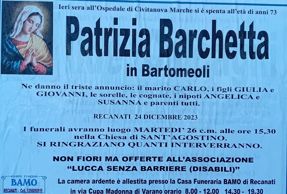 Home » E’ morta Patrizia Barchetta in Bartomeoli
