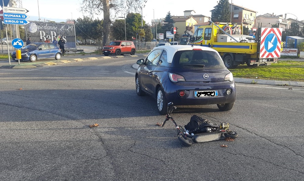 È stato necessario l’intervento dell’eliambulanza ieri sulla rotatoria di via Pizzardeto, nella zona di confine tra Porto Recanati e Loreto. Una donna, al volante della sua auto, verso le 8,30di mattina, per motivi in corso di accertamento da parte dei carabinieri della Compagnia di Osimo, ha urtato uno straniero che viaggiava sopra al suo monopattino elettrico.