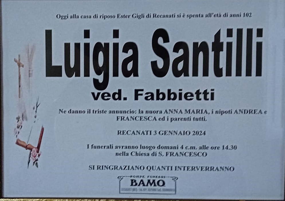 Home » E’ morta Luigia Santilli ved. Fabbietti