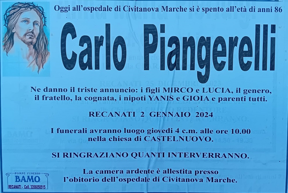 E’ morto Carlo Piangerelli