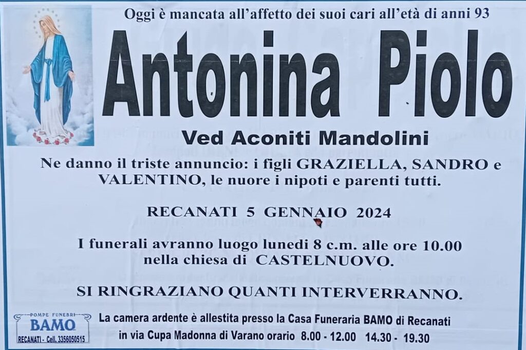 E’ morta Antonina Piolo ved. Aconiti Mandolini