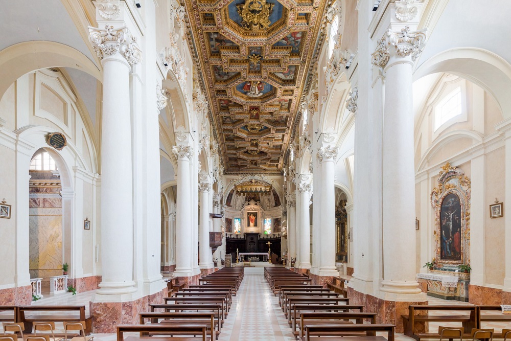 Il complesso, oltre ad essere il principale luogo liturgico cittadino, è un preziosissimo scrigno di arte e storia, custodendo tra i tanti beni niente meno che le spoglie di un Pontefice, Papa Gregorio XII, e l’unico affresco marchigiano del Maestro rinascimentale Lorenzo Lotto, il San Vincenzo Ferrer. Spicca inoltre agli occhi del fedele e del visitatore il ricco soffitto ligneo a cassettoni, al centro del quale troneggia San Flaviano a tutto rilievo.