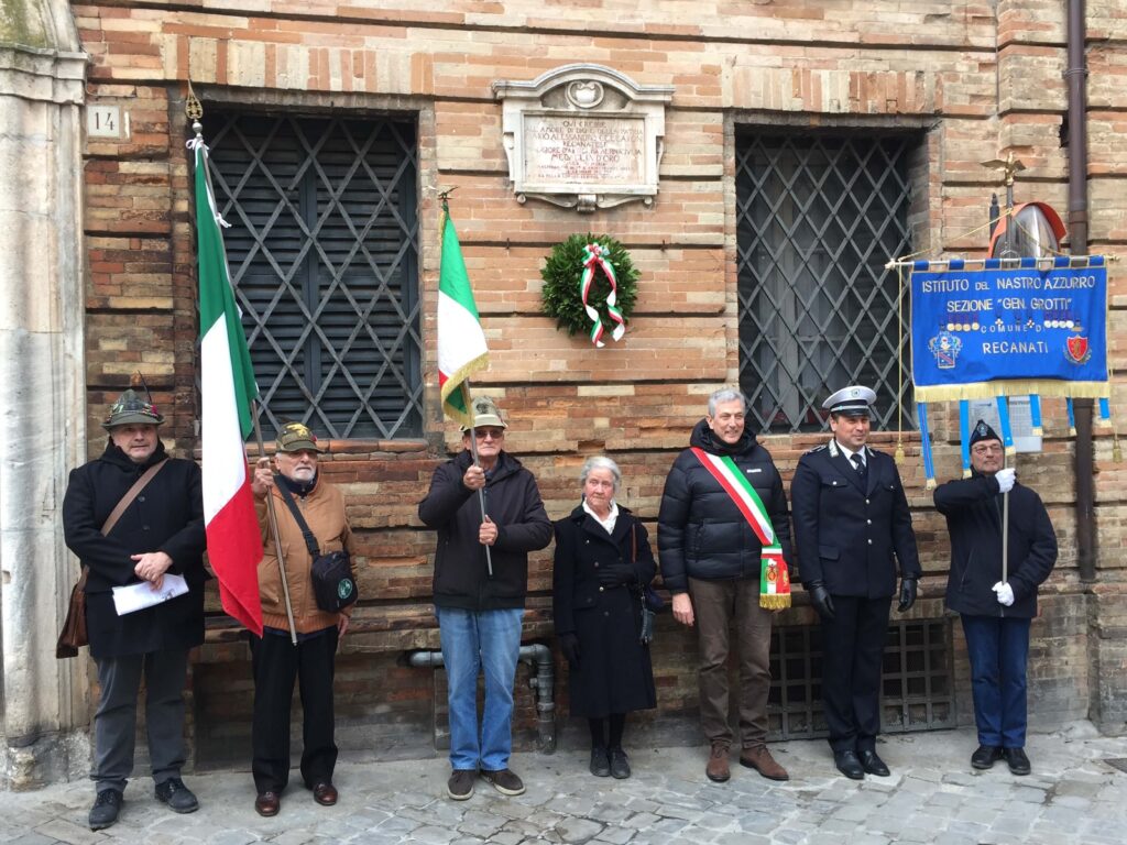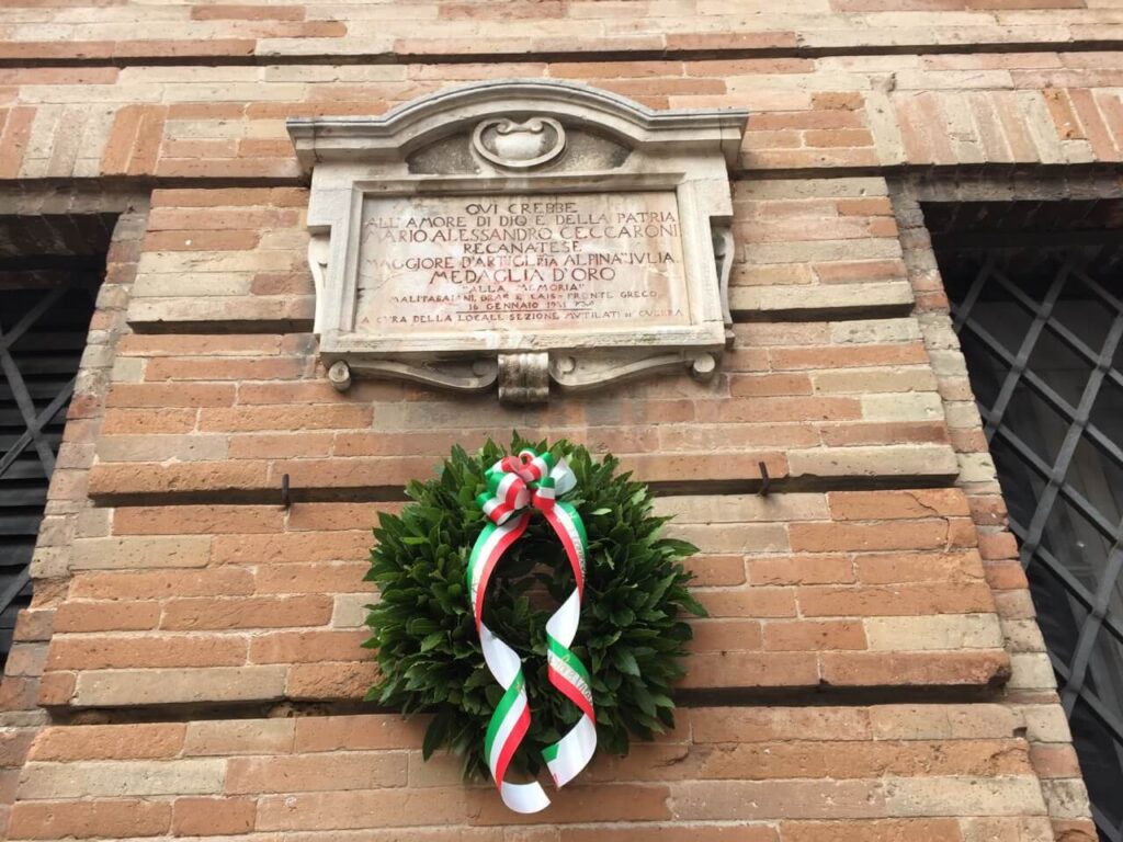 Il maggiore dell’artiglieria alpina Mario Alessandro Ceccaroni, medaglia d’oro al valor militare alla memoria, è stato commemorato questa mattina a Recanati, in Via Roma davanti al palazzo dove è cresciuto, nel giorno dell’82esimo anniversario della morte.
