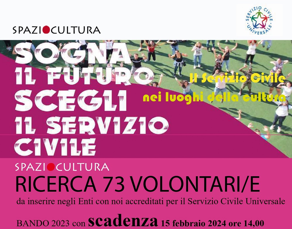 Sono 73 i posti disponibili nei luoghi della cultura della Regione Marche con l’Associazione Spazio Cultura, le domande vanno presentate (con il proprio SPID) entrando nel portare della Presidenza del Consiglio: www.politichegiovanili.gov.it