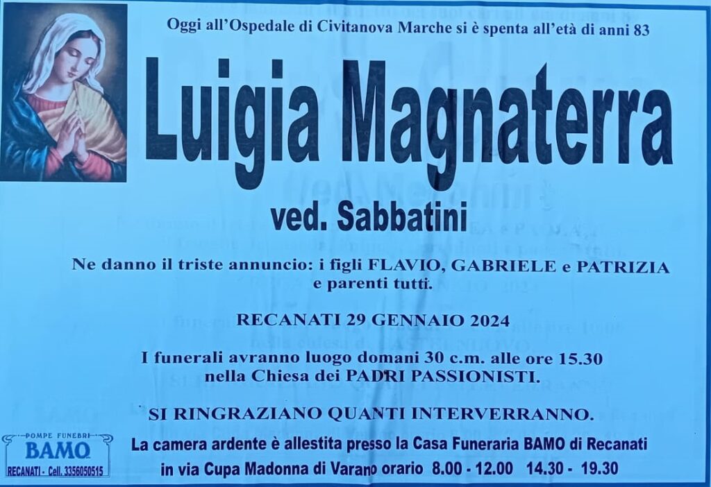 E’ morta Luigia Magnaterra ved. Sabbatini