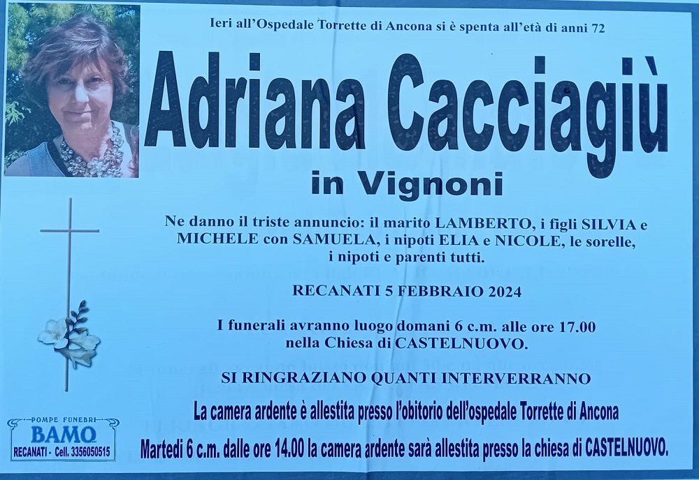 E’ morta Adriana Cacciagiù in Vignoni