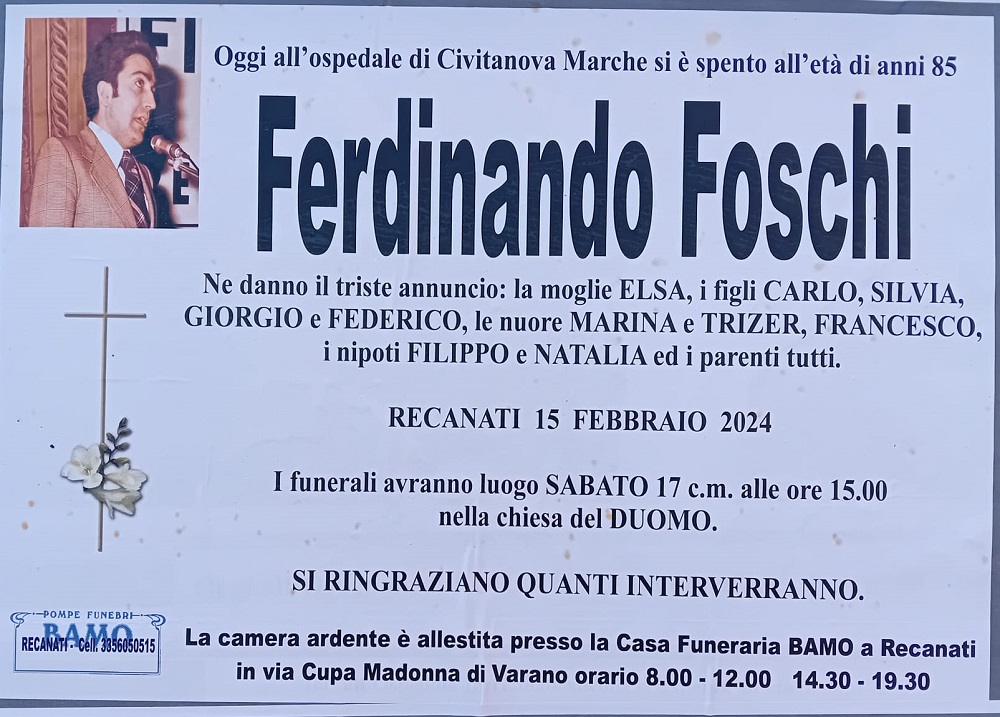 E’ morto Ferdinando Foschi