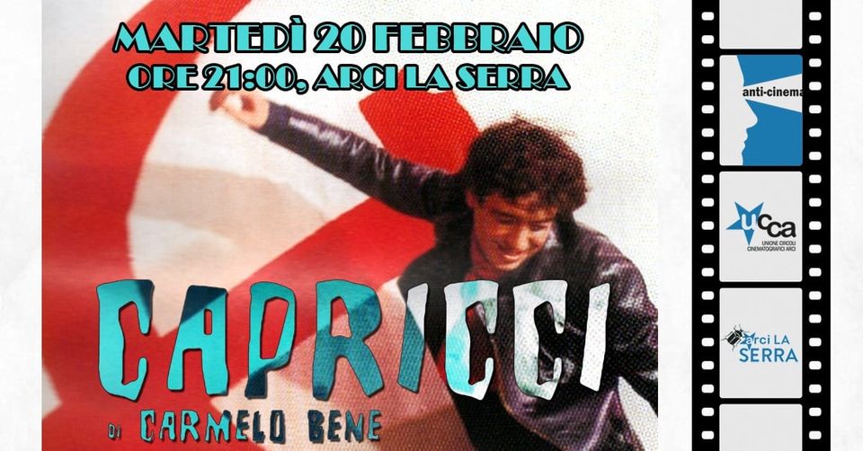 Martedì 20 febbraio prosegue con “Capricci” (1969) di Carmelo Bene il ciclo di film del Circolo ARCI / UCCA La Serra di Recanati preceduto lettura di estratti tratti dallo “Abecedaire de Gilles Deleuze”, in cui il filosofo francese ripercorre, lettera per lettera, intuizioni e concetti da lui elaborati. Nella lettera è “C” come Cultura, il filosofo critica il mondo degli intellettuali e dell’editoria a lui coeva, parlando del suo rapporto con parola, scrittura ed “incontri”. “C” come Cultura viene quindi messa in relazione proprio a quegli scontri tra arte e realtà, a quelle risse tra poeti e pittori e a quelle collisioni automobilistiche che popolano il film “Capricci” di Carmelo Bene.