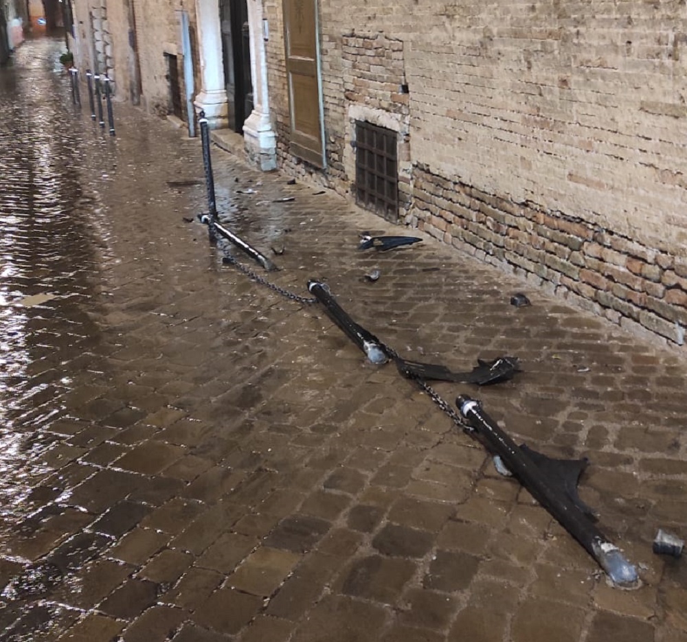 Ma quanti automobilisti frettolosi e distratti conta Recanati? In un sol colpo, l’altro giorno, appena al tramonto, in via Roma, davanti alla sede dell’Unicredit, un’auto ha abbattuto, come fossero birilli al bowling, 3 paletti in ferro posti lungo la via a delimitare il marciapiede. Questi divisori delimitano la carreggiata destinata ai mezzi in transito dalla parte pedonale per meglio consentire e salvaguardare il passaggio di chi va a piedi.