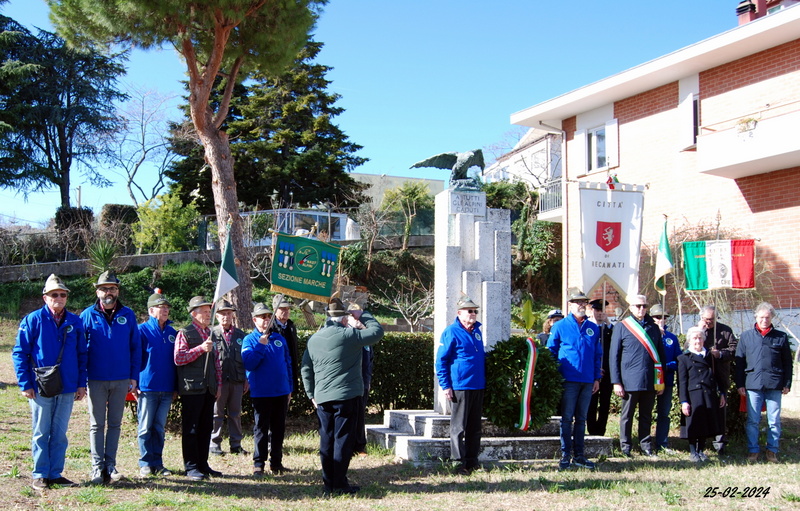 Domenica si è svolto il consueto appuntamento di febbraio per il Gruppo di Recanati e Castelfidardo dell’Associazione Nazionale Alpini. Prima di riunirsi in assemblea le penne nere hanno colto come sempre l’occasione per commemorare la Medaglia d’Oro al Valor Militare Mario Alessandro Ceccaroni a cui è intitolato il gruppo fondato nel 1965 e che riposa nel Civico Cimitero della cittadina leopardiana. Alla breve cerimonia ha partecipato anche la figlia del militare deceduto nella seconda guerra mondiale,, la Marchesa Giovanna Ceccaroni che da anni ha stretto un bel rapporto di amicizia con il gruppo.
