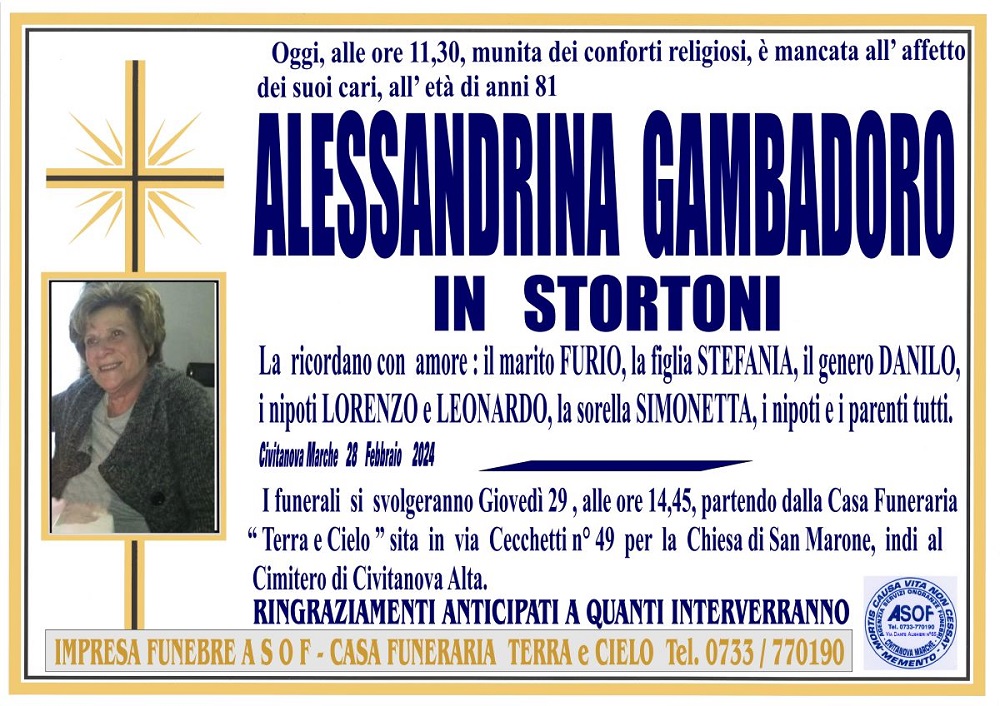 Home » E’ morta Alessandrina Gambadoro in Stortoni