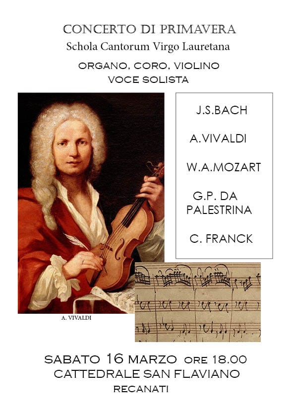 Oggi alle ore 18 nella cattedrale di san Flaviano a Recanati concerto di primavera della Schola Cantorum “Virgo Lauretana” con organo, coro, violino e voce solista.