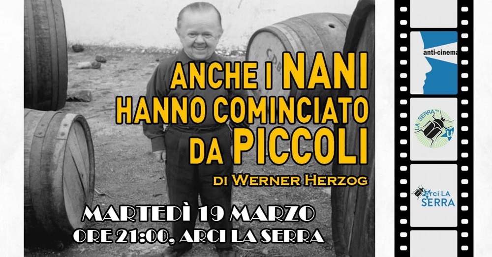 Martedì 19 marzo, alle ore 21 prosegue con “Anche i nani hanno cominciato da piccoli” (1970) di Werner Herzog il ciclo di film del Circolo ARCI / UCCA La Serra di Recanati ( piazzale Gigli ) preceduti da estratti dall‘ “Abecedaire de Gilles Deleuze”.