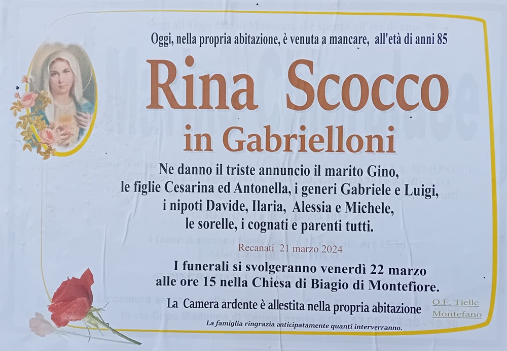 E’ morta Rina Scocco in Gabrielloni
