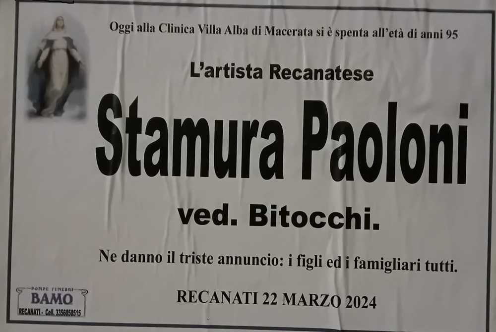 E’ morta Stamura Paoloni ved. Bitocchi