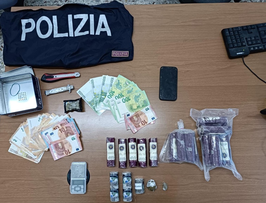 Per quanto sopra il giovane, gravato da pregiudizi di polizia per reati in materia di spaccio di sostanze stupefacenti, lesioni aggravate, rapina e porto di strumenti atti ad offendere veniva tratto in arresto per il reato di detenzione ai fini di spaccio di sostanza stupefacente e ristretto agli arresti domiciliari presso la propria abitazione così come disposto dall’A.G. in attesa dell’udienza di convalida dell’arresto.