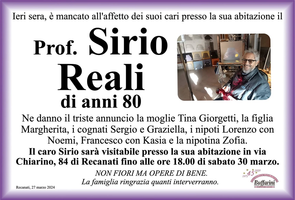 E’ morto il prof. Sirio Reali