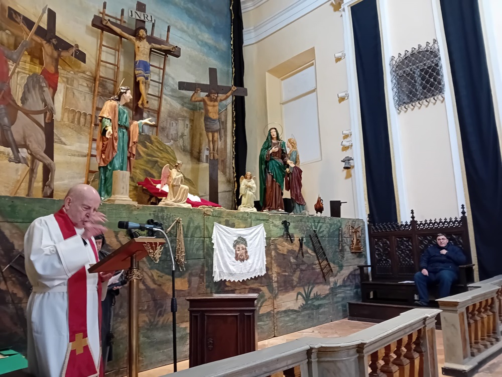 Si è svolta nel primo pomeriggio di oggi, trasmessa in differita sulle frequenze di Radio Erre, la tradizionale celebrazione delle “tre ore” con il commento alle sette parole di Gesù in Croce affidato a padre Giuseppe Moretti che è stato accompagnato, nella celebrazione, dal coro della Schola Cantorum “Virgo Lauretana”.