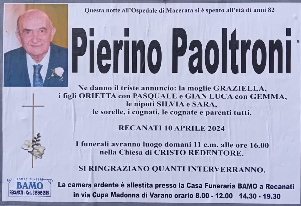Pierino era un grande uomo, dal grande cuore, sempre allegro e gioviale. Ricordo ancora la sua commozione, in chiesa, quando aveva festeggiato, insieme a Graziella, il 50° anniversario di nozze. Ciao Pierino!