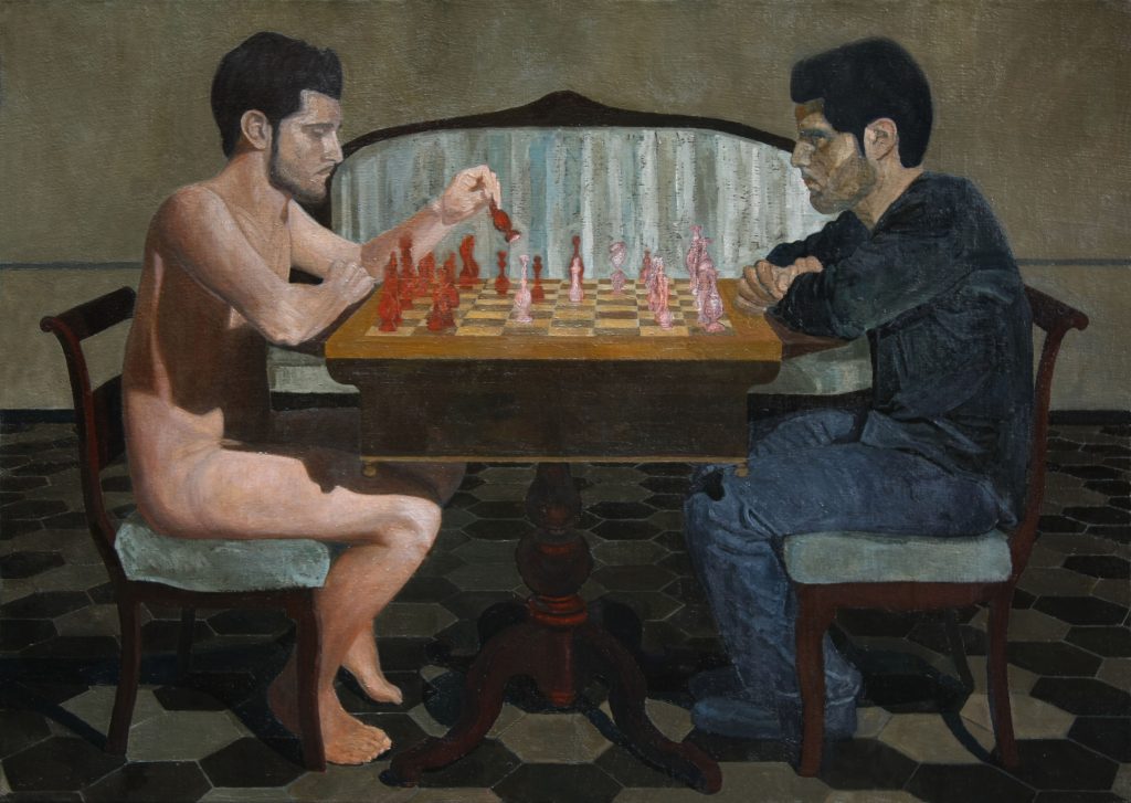 Antonio Greco, Ipotesi di partita a scacchi con il doppio, 2010, olio su tela