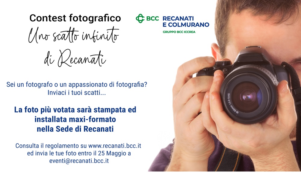 La BCC di Recanati e Colmurano ha ideato un concorso fotografico gratuito denominato “Uno scatto infinito di Recanati” rivolto a fotografi o appassionati di fotografia maggiorenni. Gli scatti fotografici inviati dovranno raccontare la città di Recanati e le sue bellezze, in maniera creativa ed emozionale.