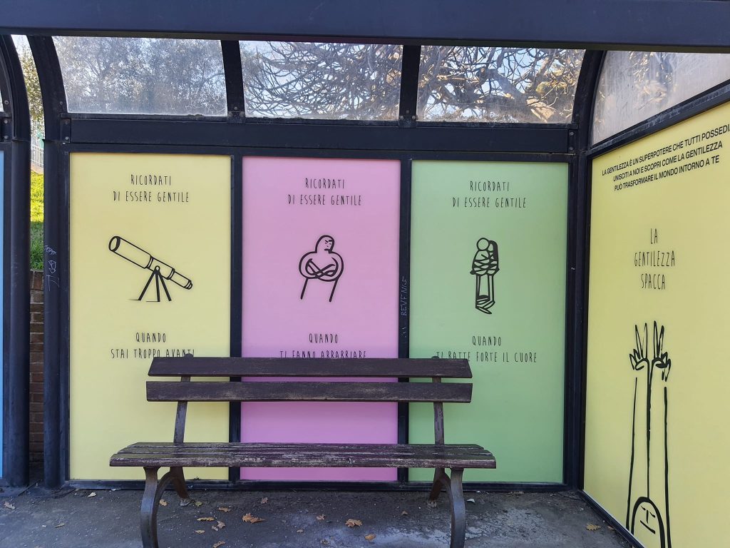 Sono durati davvero poco i nuovi pannelli delle pensiline di attesa degli autobus istallate vicino all’Istituto “Mattei” progettate per sensibilizzare i ragazzi sul tema della gentilezza. Infatti con una grafica accattivante erano riportate frasi come: ‘La gentilezza è un superpotere che tutti possediamo”. “Unisciti a noi e scopri come la gentilezza può trasformare il mondo intorno a te” per invitare i giovani al rispetto verso gli altri e i luoghi comuni.