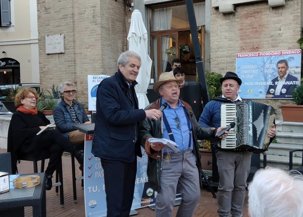 Con un format originale, a base di recitazione in vernacolo, musica folk e letteratura si è presentata oggi pomeriggio, sotto il loggiato comunale, la Lista “Civica Recanati Taddei”, che sostiene la candidatura di Francesco Fiordomo alle prossime elezioni amministrative di giugno.