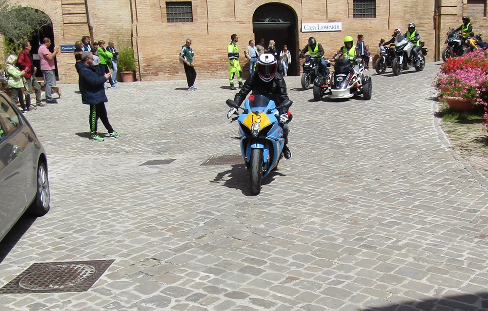 Ospite d’onore che ha portato con se la storia di trionfo nel mondo delle corse, il campione del mondo Franco Uncini che ha guidato con la sua fiammante Suzuki il giro turistico accompagnato dal nipote Romeo attraverso le strette vie della città lasciando dietro di se il fragore dei motori suscitando l’entusiasmo degli abitanti locali fino al magnifico Santuario della Santa Casa di Loreto con il gruppo riunito in piazza della Madonna per ricevere la benedizione del motociclista con la presenza il Vescovo sua Ecc.za Fabio Dal Cin.