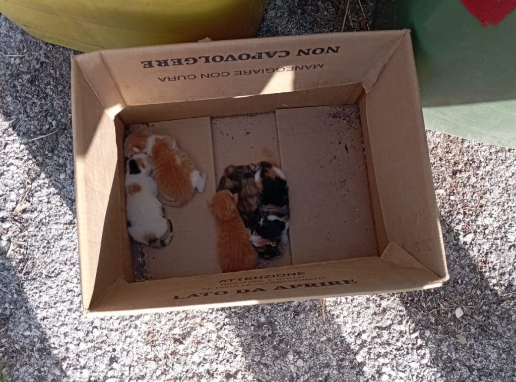 I gattini sono stati visitati, avranno dai tre ai cinque giorni, pancino pieno, probabilmente tolti subito dopo l’allattamento. In tanti ci state contattando, abbiamo aperto una raccolta fondi da Riccardo di Linea Verde, salvadanai presso farmacia Le Fonti, Milva parrucchiera, Pasticceria Tentazioni (zona ex Eko).