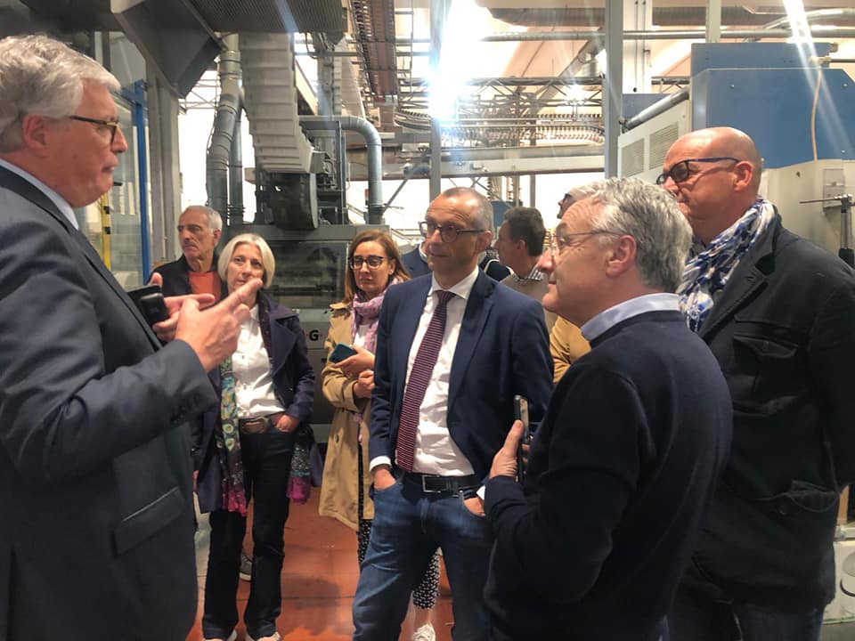 Eccellenza a livello nazionale e internazionale, la “Tecnostampa” è stata ieri visitata da Matteo Ricci, sindaco di Pesaro e candidato per il Centro Italia alle prossime elezioni europee. L’ iniziativa è stata promossa dal PD recanatese, presente in delegazione, insieme al segretario provinciale Angelo Sciapichetti e al sindaco Antonio Bravi. Il piccolo gruppo è stato accolto calorosamente da Giuseppe Casali, oggi socio di riferimento dell’azienda fondatore e amministratore delegato, che dopo avere illustrato la storia e la specificità dell’ azienda, lo ha guidato attraverso parte dei vastissimi spazi della stessa, dove anche Ricci si è emozionato davanti a una rotativa in azione lunga 64 metri o davanti a volumi d’ arte che sono in pochi in grado di stampare con le qualità richieste in esacromia.