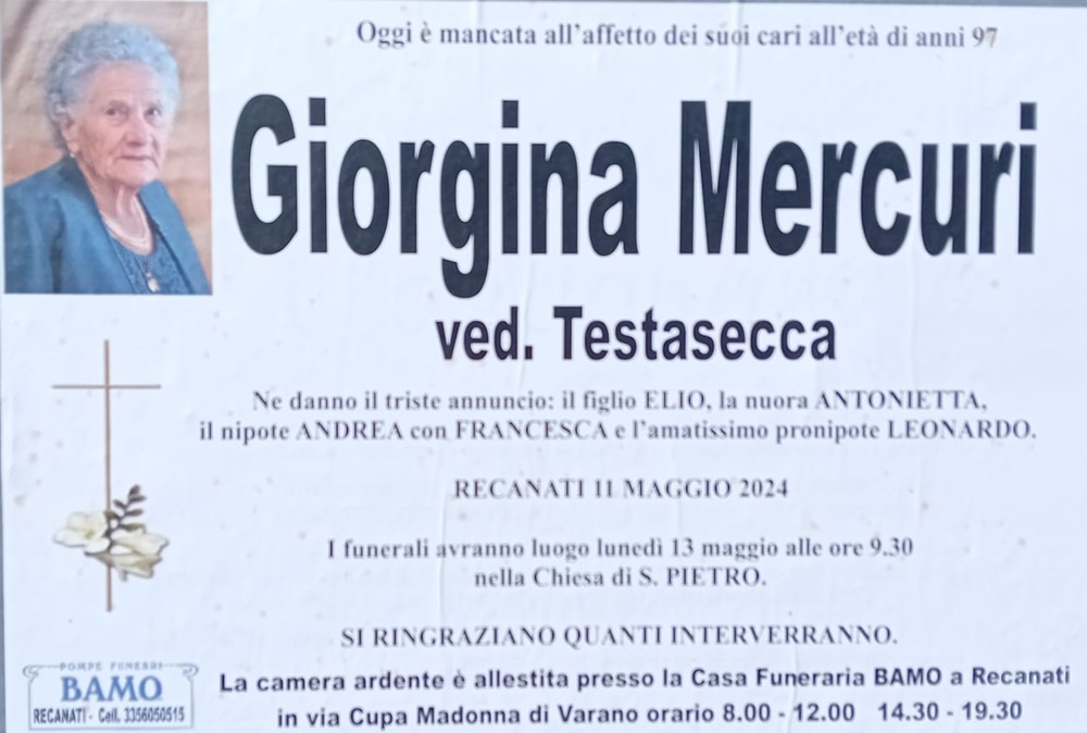 E’ morta Giorgina Mercuri ved. Testasecca